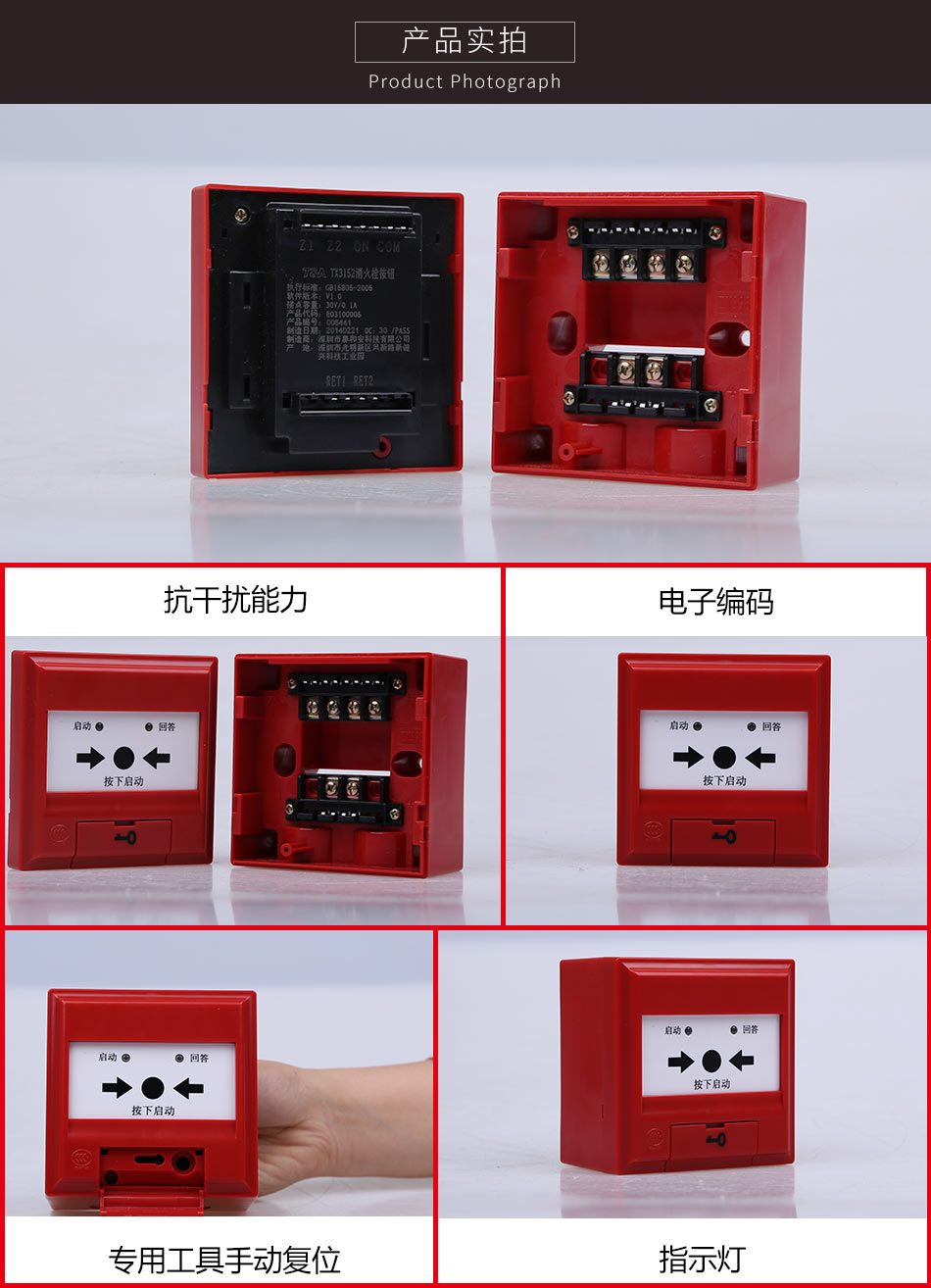 ●按下消火栓按片,可由消火栓提供獨(dú)立輸出觸點(diǎn),可直接控制其它外部設(shè)備